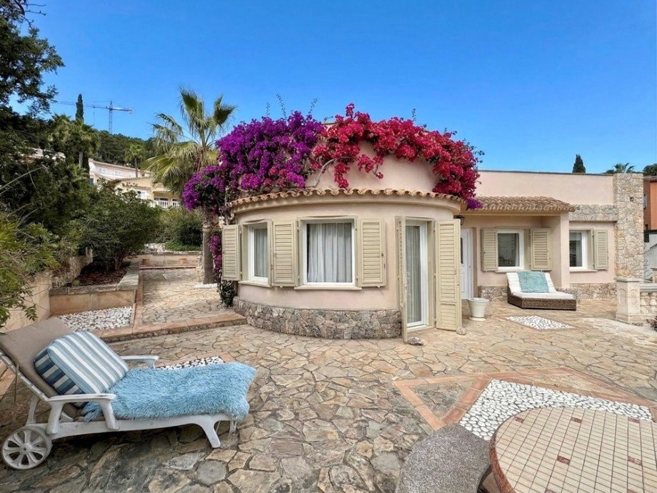 Dieses charmante mediterrane Haus in hervorragender, ruhiger Lage von Paguera vereint komfortables Wohnen mit südlichem Flair. Der gesamte Hauptwohnbereich befindet sich auf einer Ebene und kommt ohne Treppen aus - ideal für barrierearmes Wohnen und höchsten Alltagskomfort. Herzstück der Immobilie ist das großzügige Wohnzimmer mit Kamin, dessen große Fensterfronten sich vollständig öffnen lassen und so einen fließenden Übergang zur überdachten Terrasse und in den pflegeleichten Garten schaffen. Die offene, harmonisch integrierte Küche unterstreicht das luftige Raumgefühl und lädt zum geselligen Beisammensein ein. Das großzügige Hauptschlafzimmer mit eleganter Erker-Rundung verfügt über ein Bad en Suite sowie einen Ankleidebereich. Zwei weitere Schlafzimmer, ebenfalls jeweils mit eigenem Bad, bieten Familie und Gästen viel Privatsphäre. Ein Gäste-WC ist ebenfalls vorhanden. Im unteren Bereich befindet sich zudem ein separates Apartment mit eigenem Bad, ideal für Besucher oder als Rückzugsort. Das weitgehend flache Grundstück begeistert mit großzügigen Terrassenflächen und bietet die legale Möglichkeit zum Bau eines Pools. Eine Garage ist ebenfalls vorhanden. Trotz der ruhigen Wohnlage sind der Boulevard von Paguera mit seinen Restaurants, Cafés und Geschäften sowie der feinsandige Strand in nur etwa 300 Metern bequem zu Fuß erreichbar - eine perfekte Kombination aus Erholung und Lebensqualität auf Mallorca.